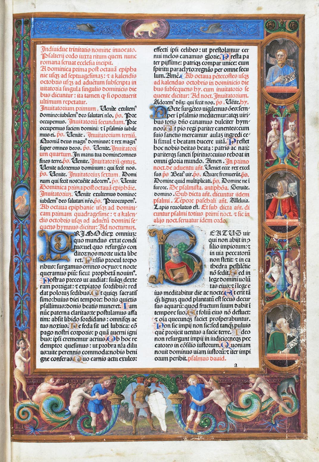 Faune, Seeungeheuer und Heilige bevölkern die Bordüre von Ugelheimers Brevier von 1478.